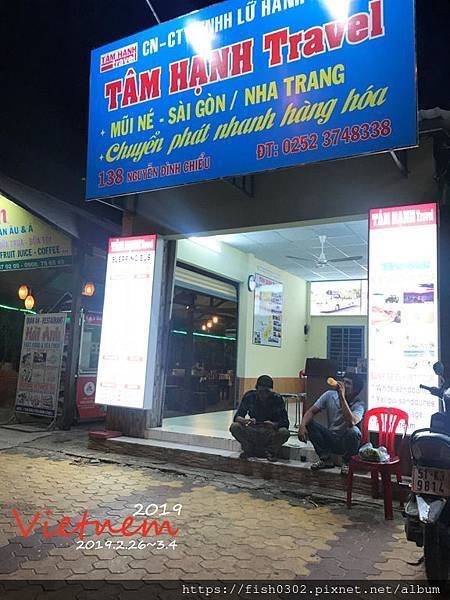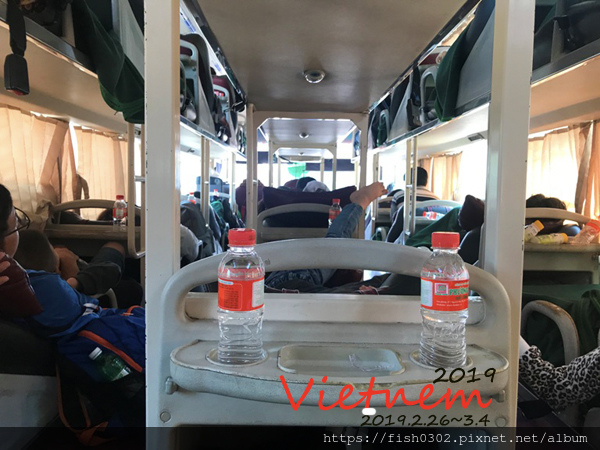 臥舖巴士有上下兩層,據說要搭下層比較穩,所以我全部畫位下層,這是我們第一次搭臥鋪巴士,大家都覺得很新鮮,上車後每人會免費提供1-2小瓶裝水,車程需要5小時車程,這樣搖搖晃晃下就到了美奈,沒有什麼不適,中間會停靠一個休息站,休息站的東西偏貴,可以再出發前先準備車上吃的零食。