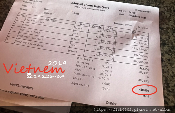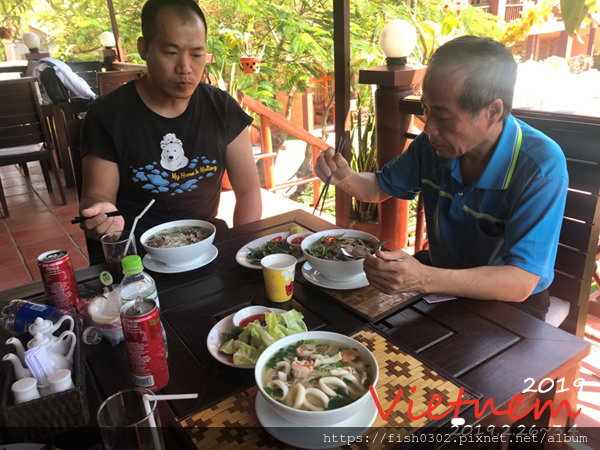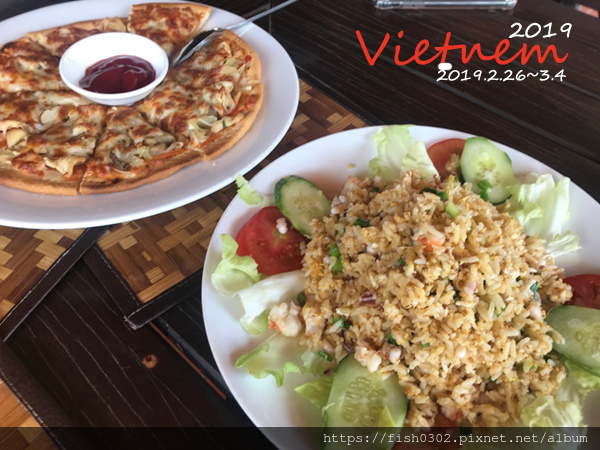 我早已在網路上預約了美奈半日遊,我們趕緊先到度假村的餐廳用餐,我們每人點一份pizza,一大盤炒飯,二碗牛肉河粉,一晚海鮮河粉,這樣的餐點不用台幣600元,餐點很豐盛,價格卻非常的誇張,原本只想塞塞肚子止餓一下,沒有多大期待,沒想到餐點一點都不馬虎,而且很美味。