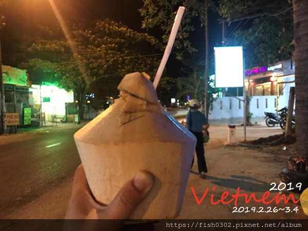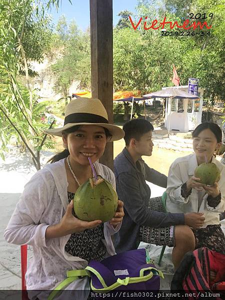 我其實就是為了仙女溪而來到越南的。司機人很好,第一站就先買一人一個椰子給我們消暑。