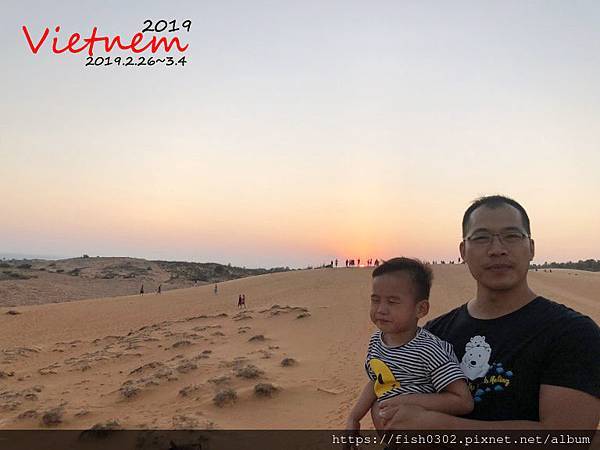 (這組人馬有趕到看日落的地方,是說這孩子已被風吹沙搞得眼睛睜不開了,有點搞笑!)
